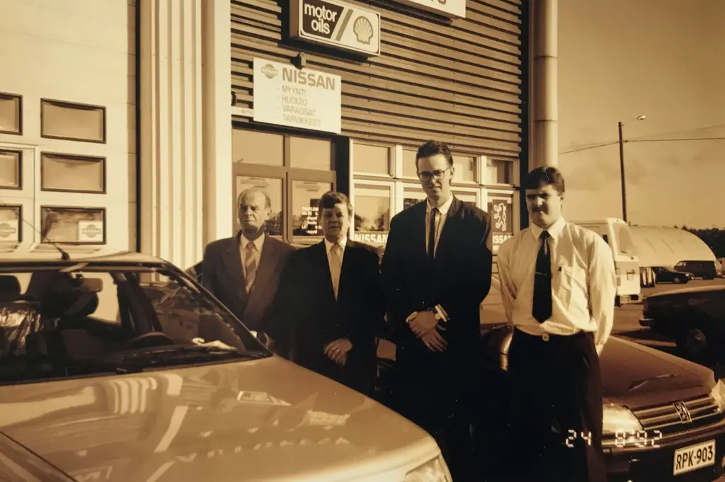 Autokeskuksen Nissan- ja Peugeot-myymälän avajaiset 24. elokuuta 1992.